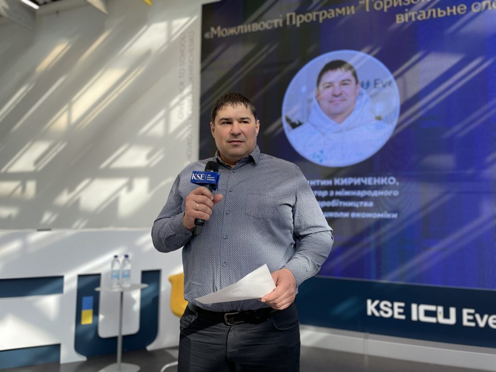 The event was opened by Kostyantyn Kyrychenko, Vice-Rector for International Cooperation at the Kyiv School of Economics. He welcomed the participants, introduced the speakers from the Office, and briefly introduced the audience to the activities of the higher education institution, in particular its grant activities.