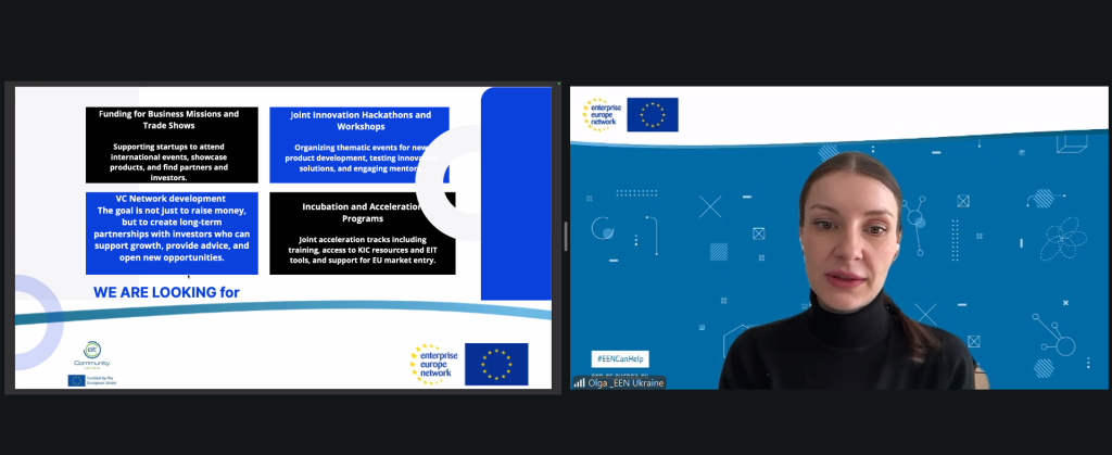 Finally, the discussion on strategic cooperation between the EEN Ukraine Consortium and the EIT Hub in Ukraine was held. The cooperation is provided in line with the EEN-EIT Cooperation Guidelines, focusing on shared priorities, areas of synergy and complementary actions, joint initiatives and common activities.