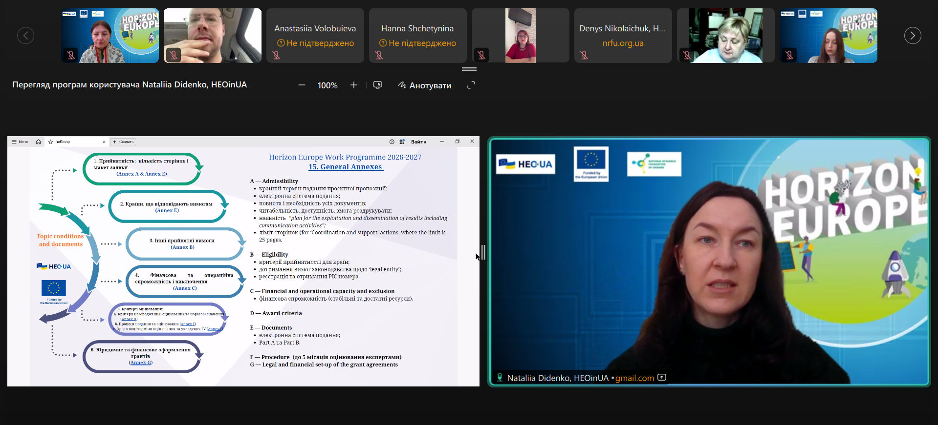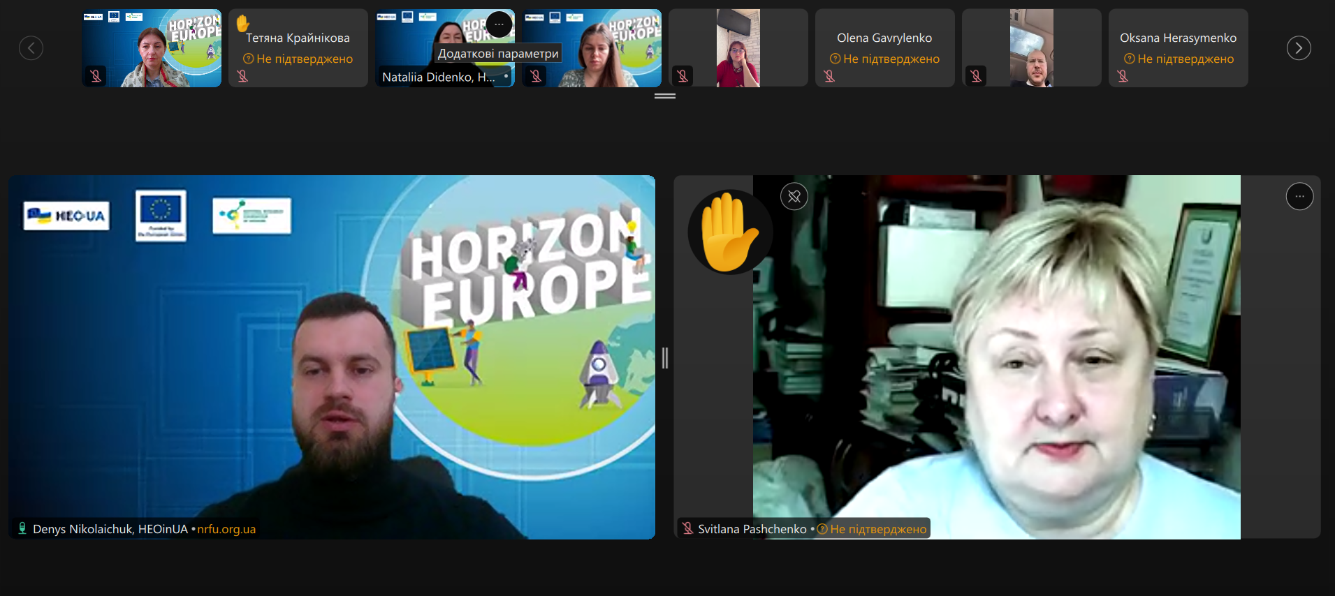 Strengthening participation in the Horizon Europe Programme: Horizon Europe Office in Ukraine, NRFU, held webinar for employees of the Taras Shevchenko Kyiv University