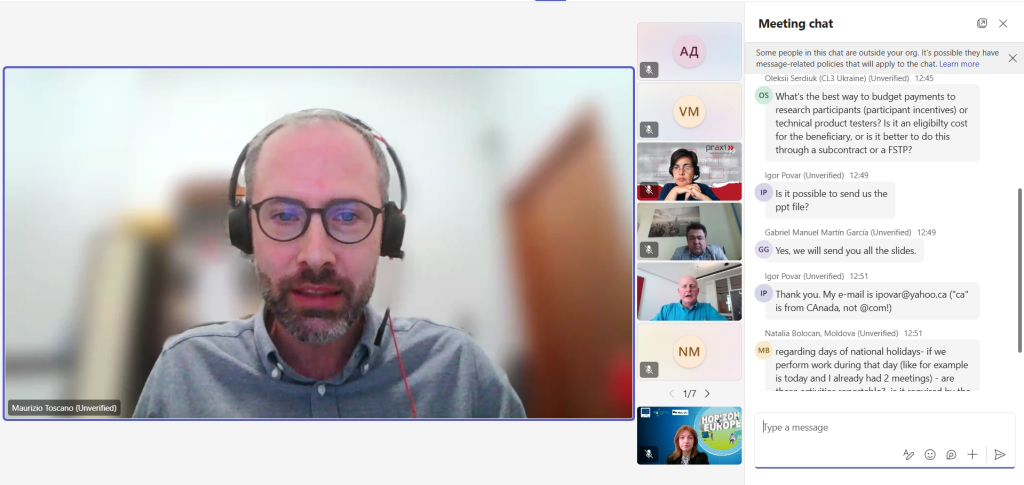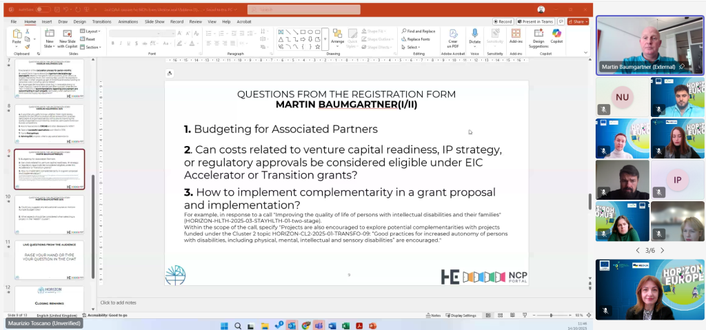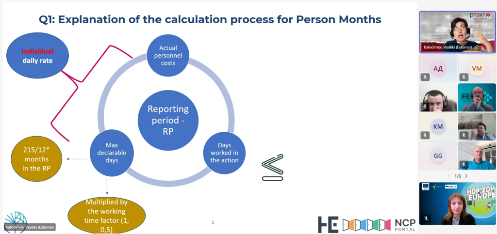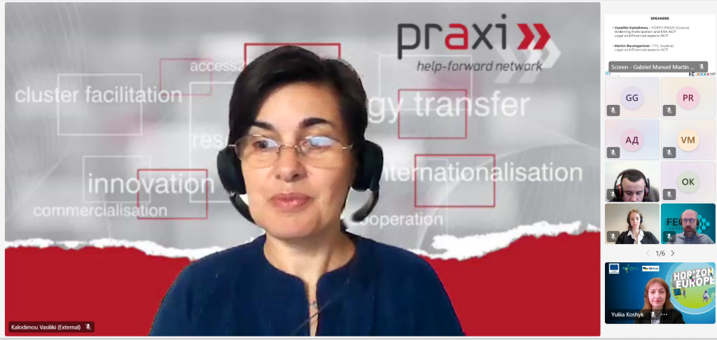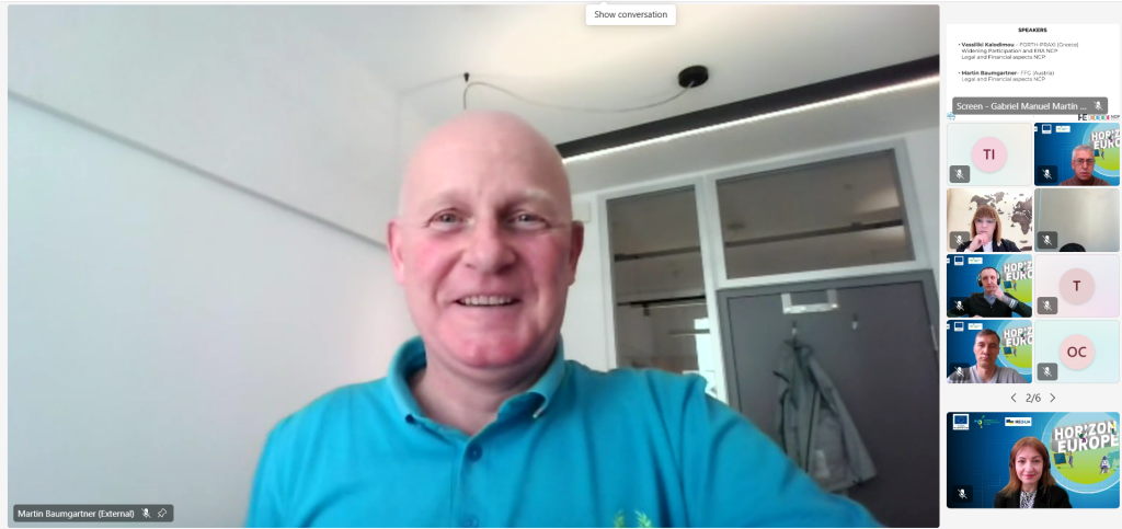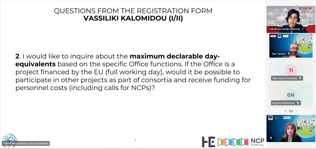 During this session, representatives of the NCP Vasiliki Kalodimou, WIDENING NCP specialist, Greece, and Martin Baumgartner, Legal & Financial NCP, Austria, provided explanations to questions sent in advance by participants, as well as those that arose directly during the streaming of the event, within their areas of responsibility. In particular, the questions concerned the possibilities for NCPs to participate as project partners, the preliminary evaluation of project applications, the maximum number of days of employment in projects, budgeting, subcontracting and other financial issues.