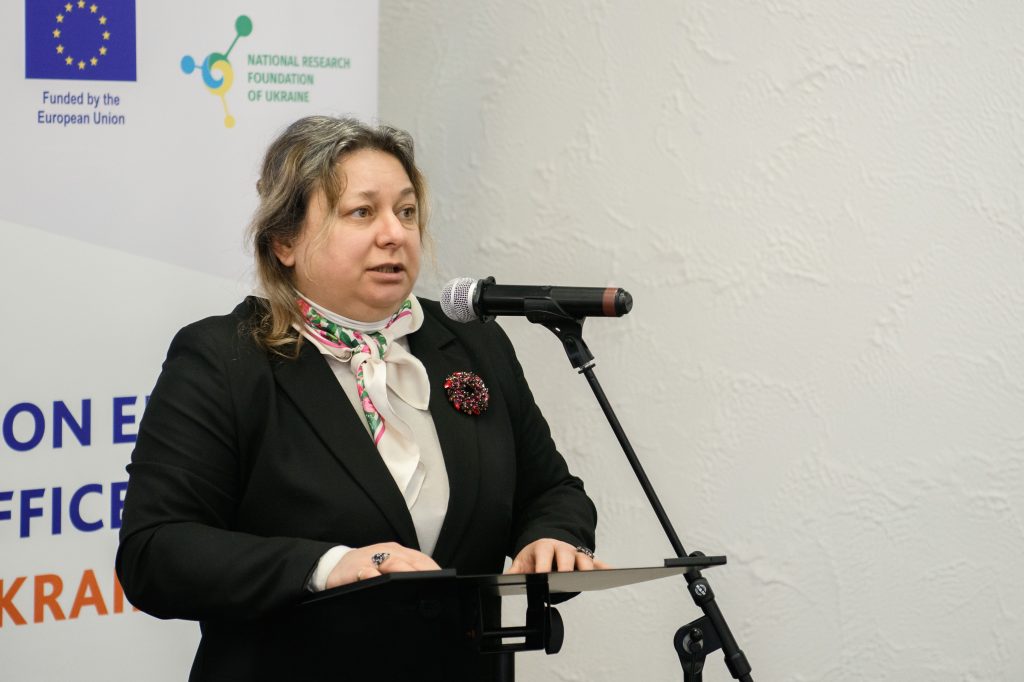 The event was opened with a welcoming speech by Denys Kurbatov, Deputy Minister of Education and Science of Ukraine. The participants were also addressed by Carole Mansel-Blanchard, Head of RTD 03, EC, Stefan Schleuning, Head of Cooperation at the EU Delegation to Ukraine, Valeriy Koliukh, Head of the Subcommittee on Science and Innovation, Verkhovna Rada Committee on Education, Science and Innovation, Oksana Kis, Head of the National Research Foundation of Ukraine, and Olga Polotska, Executive Director of the National Research Foundation of Ukraine. In addition, Dr Lidia Borell-Damian, Secretary General of Science Europe, greeted the participants in a video address.