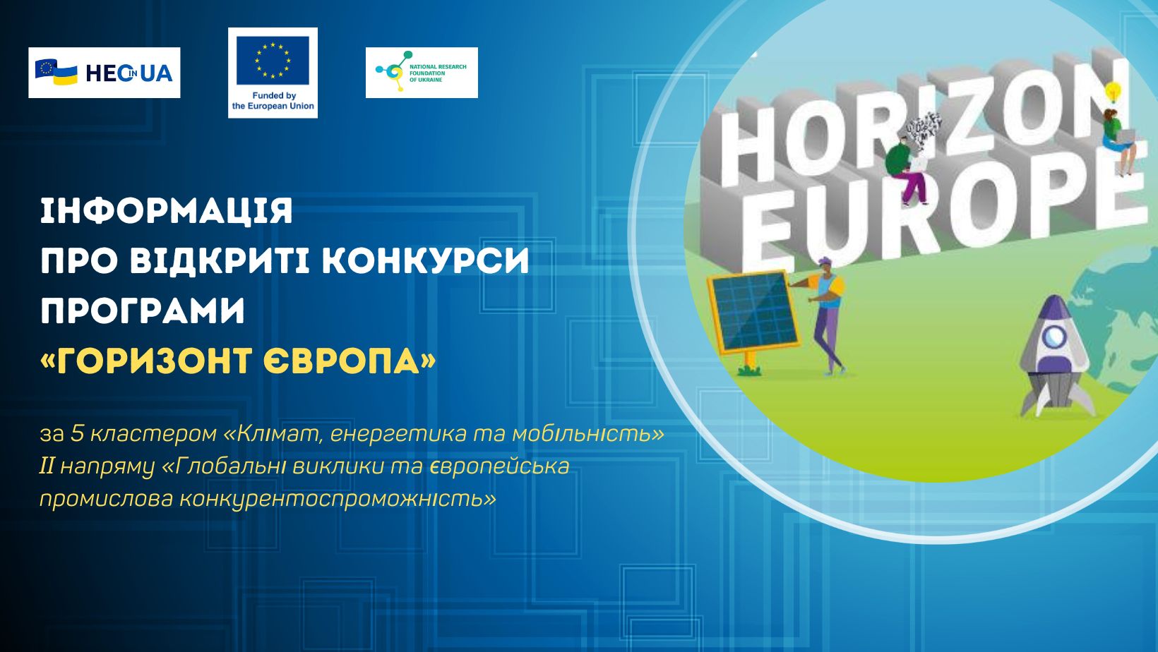 Актуальні конкурси за кластером 5 «Клімат, енергетика та мобільність» у сфері відновлюваної енергетики та енергетичного переходу