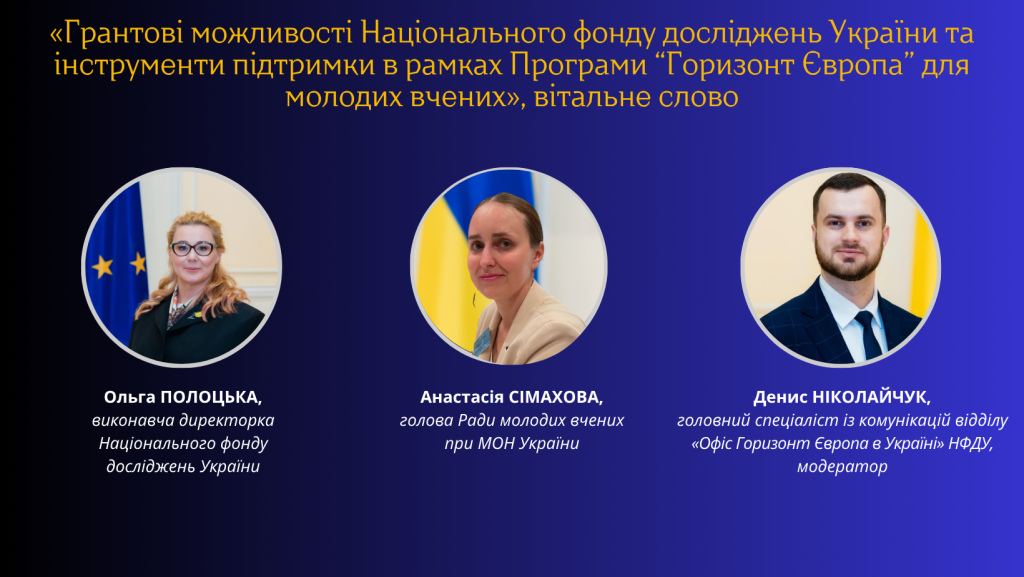 Анонс вебінару «Грантові можливості Національного фонду досліджень України та інструменти підтримки в рамках Програми “Горизонт Європа” для молодих вчених»