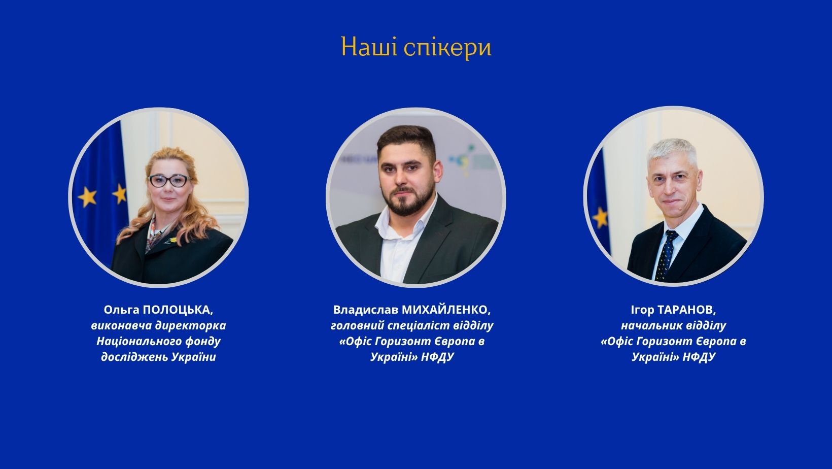 •  можливості для українських учених у рамках Програми «Горизонт Європа»: діяльність «Офісу Горизонт Європа в Україні» НФДУ;