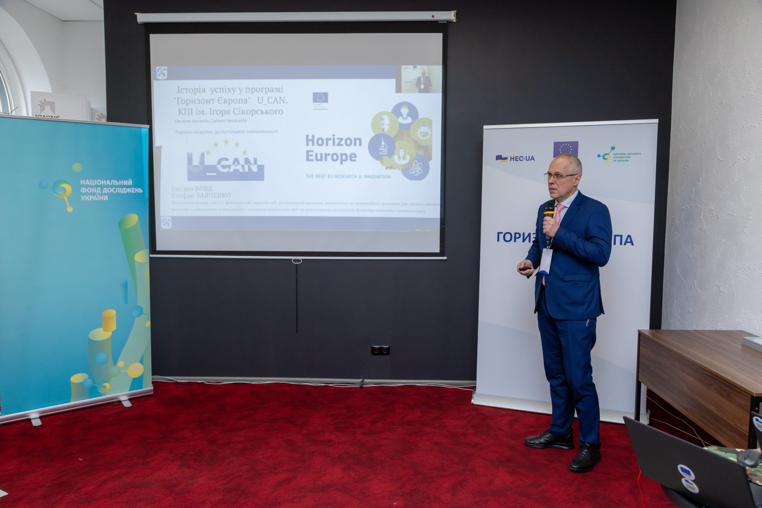 Також учасникам заходу були представлені успішні історії українських дослідників у конкурсах НФДУ (Михайло Сливка, професор кафедри органічної хімії Ужгородського національного університету: шляхи створення та перспективи гібридних матеріалів; Ольга Звірко, завідувачка відділу діагностики корозійно-водневої деградації матеріалів Фізико-механічного інституту імені Г. В. Карпенка НАН України: перспективи перепрофілювання газотранспортної мережі для водню у зеленій реконструкції України), а також Програми ЄС «Горизонт Європа» (Стефан Зайченко, професор кафедри автоматизації електротехнічних та мехатронних комплексів Національного технічного університету України «Київський політехнічний інститут імені Ігоря Сікорського»: шлях українських міст до кліматичної нейтральності разом із Європою: проєкт U_CAN; Роман Яцишин, ректор Івано-Франківського національного медичного університету та Христина Лесів, керівниця відділу міжнародних зв’язків університету: історія успіху в проєкті UNCAN-CONNECT).