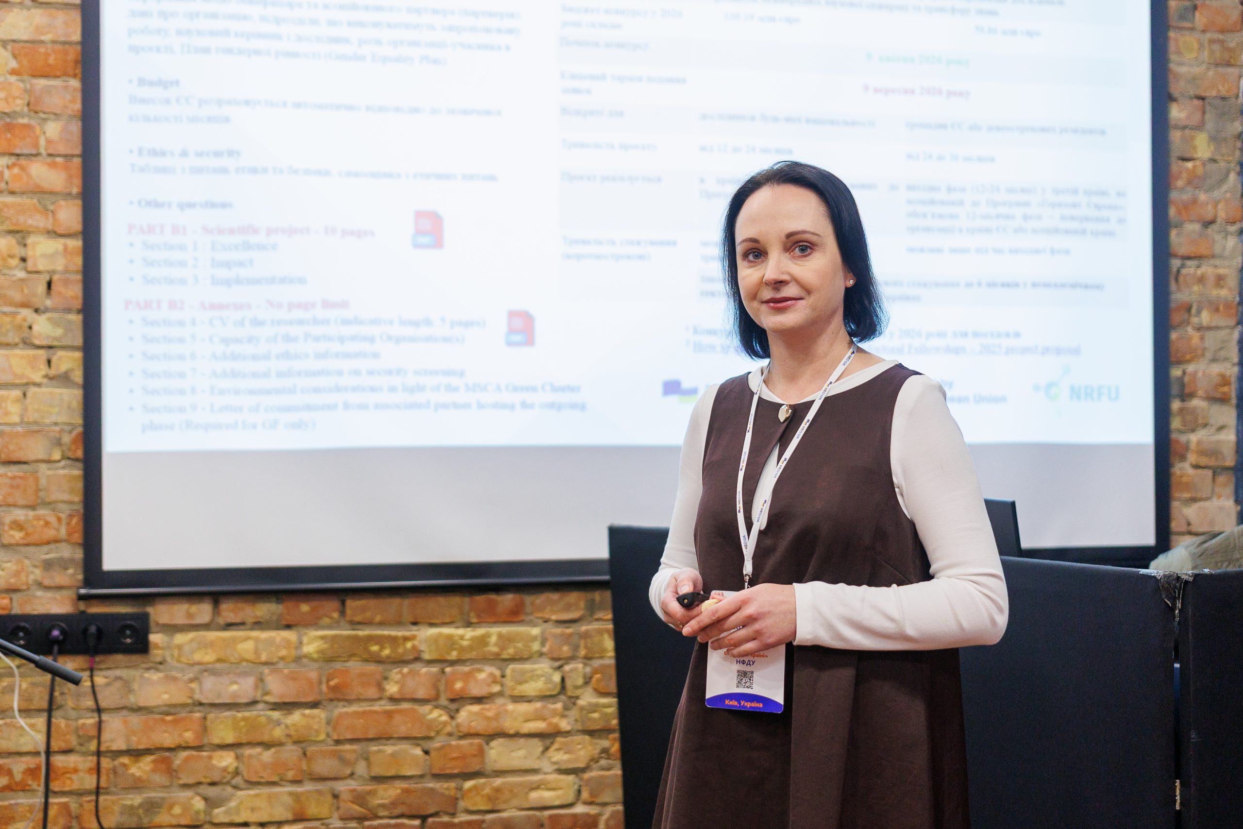Під час тренінгу фахівці Офісу поділилися з учасниками актуальною інформацією щодо правил формування бюджету проєктної пропозиції, приділивши увагу оновленим формам і ключовим змінам у 2026-2027 роках; моделей фінансування та їх особливостей, а саме: каскадного фінансування, Unit Cost Model на прикладі конкурсу MSCA Postdoctoral Fellowship; специфіки індивідуальних грантів ERC та EIC. Окремо розглянули Hop-On Facility як інструмент додаткового фінансування.
