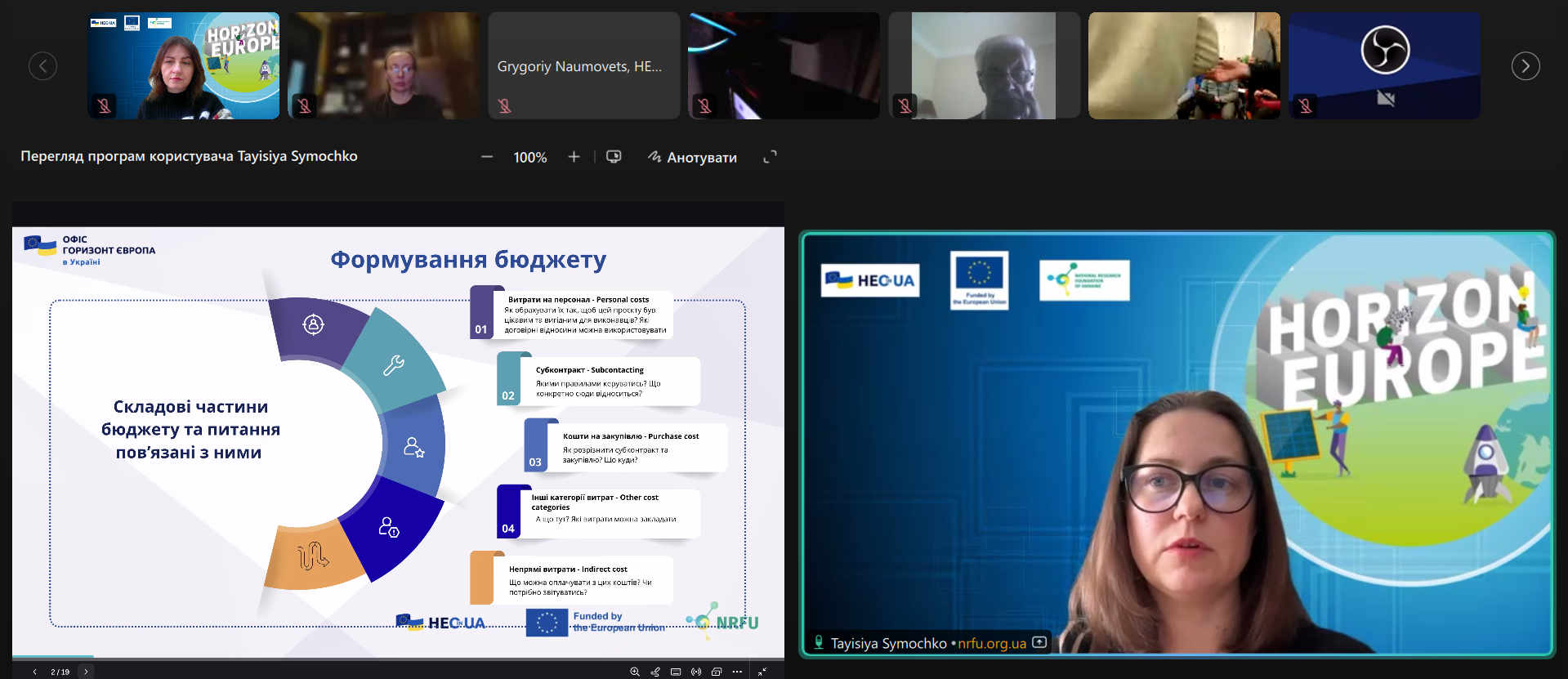 Команда «Офісу Горизонт Європа в Україні» НФДУ провела навчальний захід, присвячений практичним аспектам участі у Програмі «Горизонт Європа»