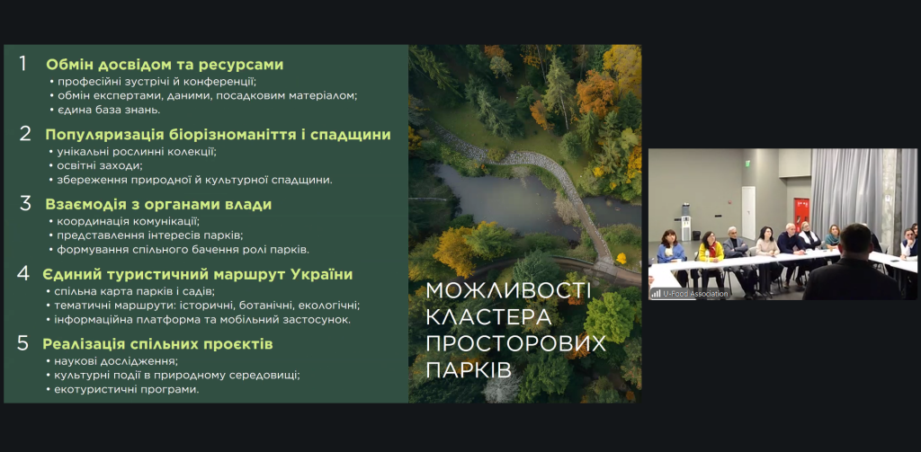Метою події стало об’єднання широкого кола стейкголдерів – представників наукових установ, адміністрацій об’єктів природно-заповідного фонду, органів державної влади і місцевого самоврядування, громадських організацій та інших – для формування спільного бачення подальших кроків розвитку Кластера у 2026 році, який поєднує науку, інновації, цифровізацію, ландшафтний дизайн, екотуризм і міжрегіональну співпрацю з метою формування сучасної екосистеми управління українськими парками, дендропарками та ботанічними садами.