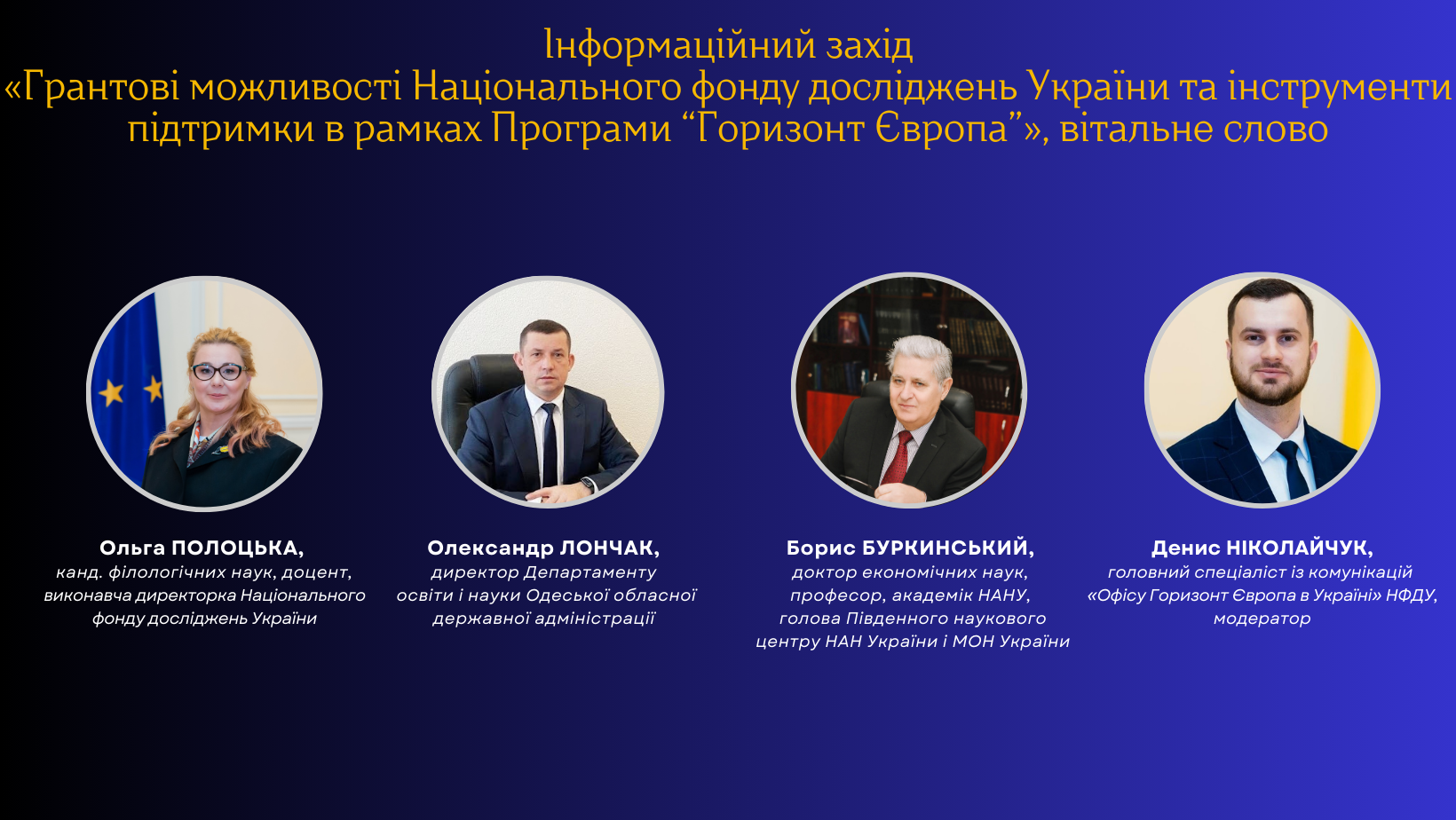 Нагадуємо, що 03-05 вересня НФДУ проведе інформаційний захід «Грантові можливості Національного фонду досліджень України та інструменти підтримки в рамках Програми “Горизонт Європа”» у місті Одеса.