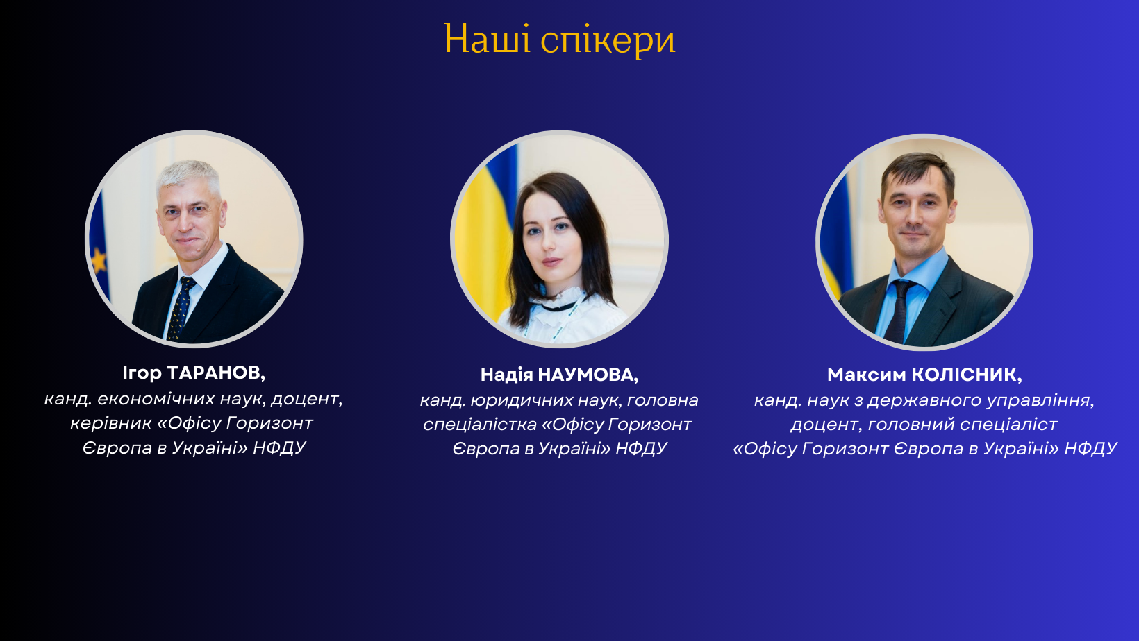 - Фінансові питання участі у Програмі «Горизонт Європа»;