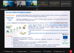 Головний спеціаліст Офісу Владислав Михайленко представив грантові можливості Програми, акцентувавши увагу на підтримці проривних досліджень та інновацій, а також на практичних результатах проєктів, що сприяють позитивним змінам у суспільстві.